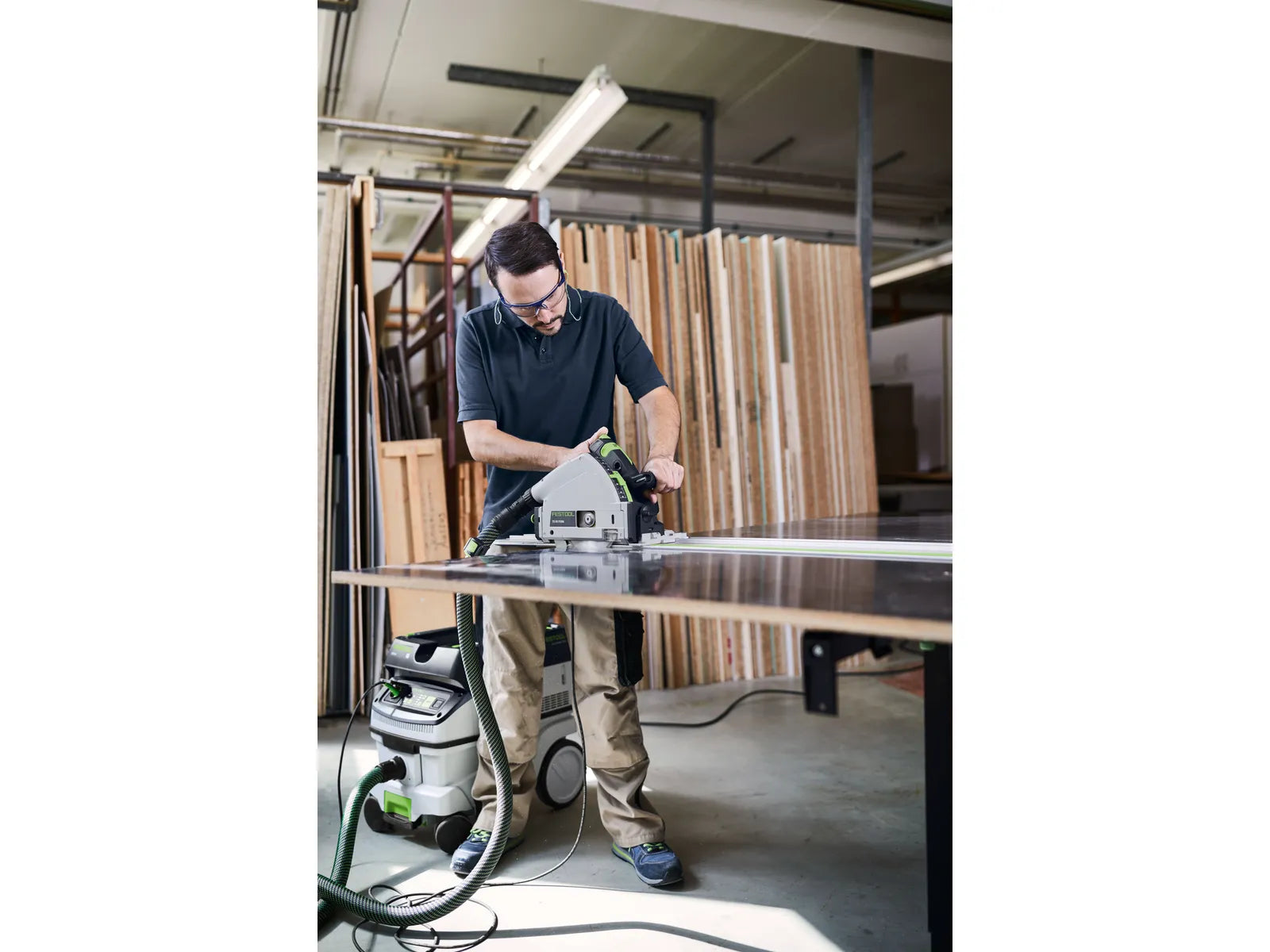 Automatycznie uruchamia się z kompatybilnymi narzędziami Festool lub opcjonalnym pilotem zdalnego sterowania dla płynnej pracy